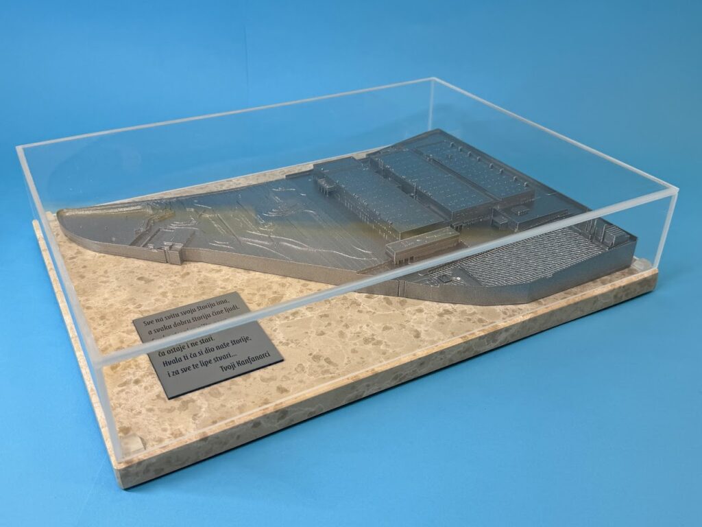Nakon izrade modela, sve komponente su isprintane u visokoj kvaliteti. Gotova maketa je fizički prikaz prostora – skalirana, modularna i spremna za izlaganje.